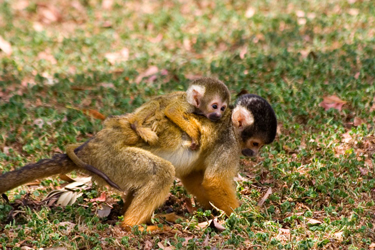 海の中道海浜公園での動物写真、3枚連続更新中(の2枚目)。 ボリビアリスザルの親子。 こうやって背中に赤ちゃんがしがみついています。 …かわいらしい。 それにしてもこんなに小さくても握力はすごいのね。 しがみついたまま寝てる子もいたし。