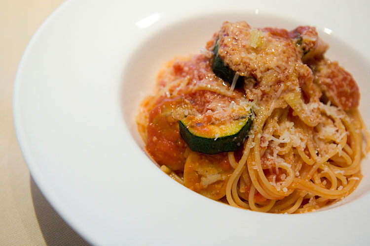 阿蘇黒豚のサルシッチャとグリルズッキーニのスパゲッティ。