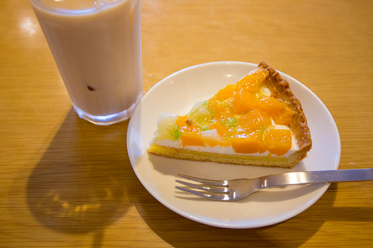 "CAFE MUJIで桃とヨーグルトのタルト"