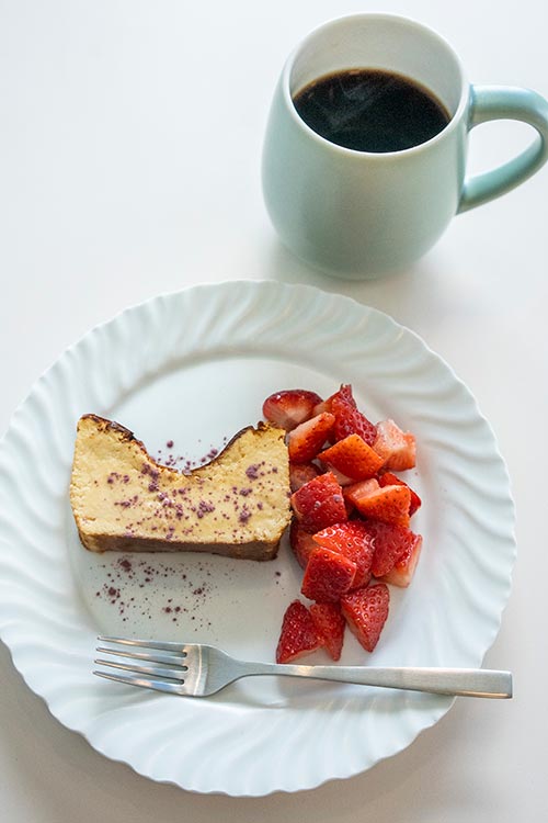オリジナルのグルテンフリーチーズケーキに苺(この日はあまおう)が