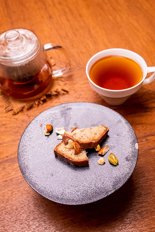 かき氷だけだと冷えちゃうので温かいフレーバーティーをお願いしたんですが、