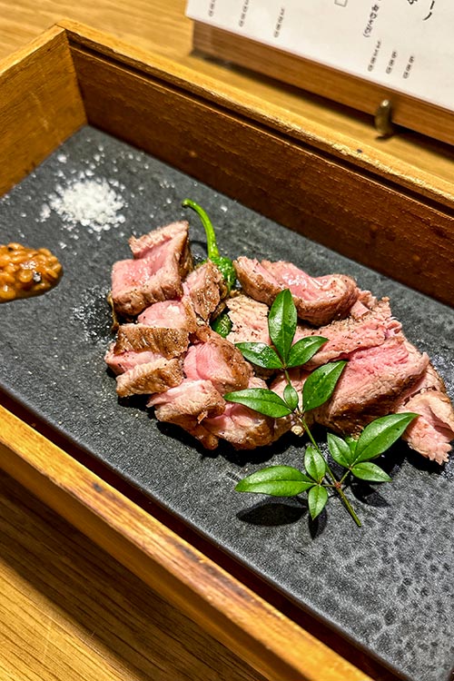 よい香りの煙とともにお肉が登場しました。