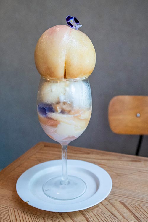 苺ブリュレパフェは何度かあるんですが、桃パフェは食べたことなかったんです。