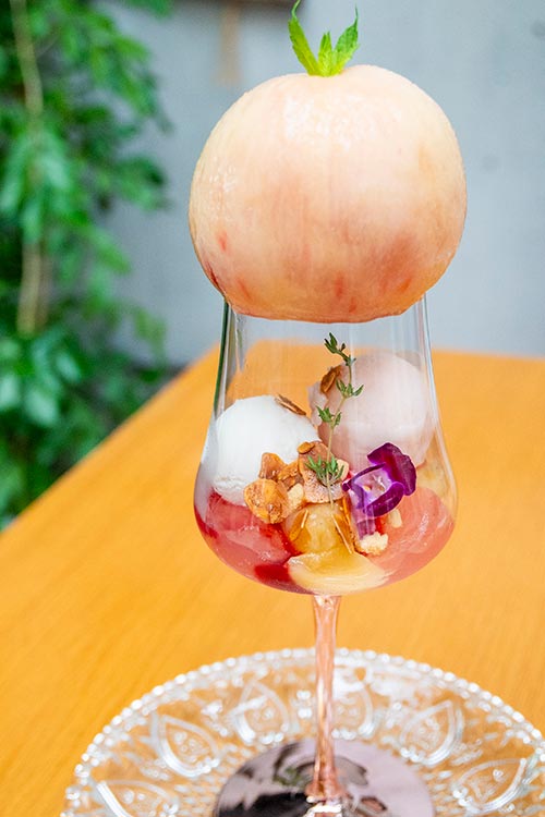 出張中の友人とヘルシーランチの後は大名の「luce fiore(ルーチェ フィオレ)」さんで桃パフェ!