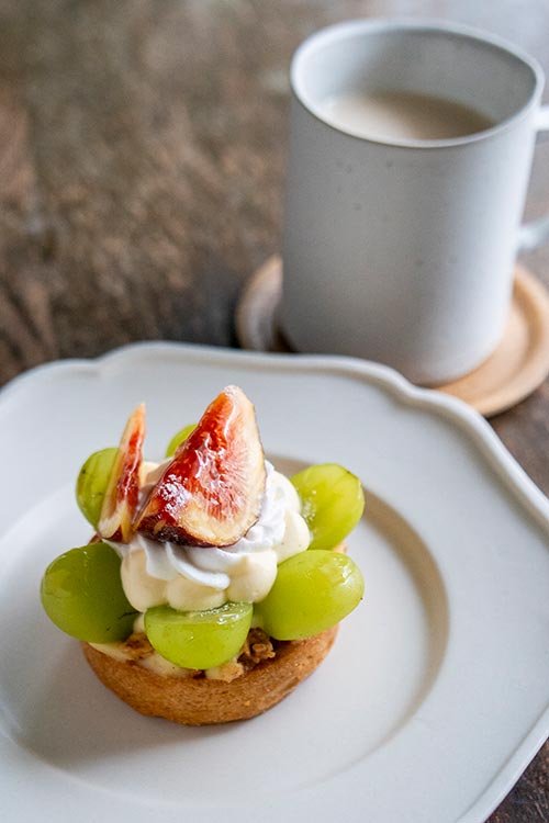 タルトレットセゾンは今までも結構いただいてきたけど、今の季節は無花果とシャインマスカット!