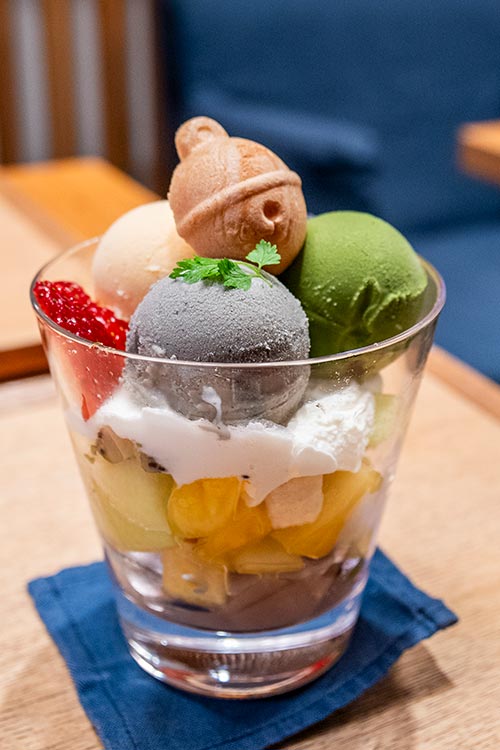 アイスは4種から3つ選べて、抹茶、黒胡麻、バニラにしました。