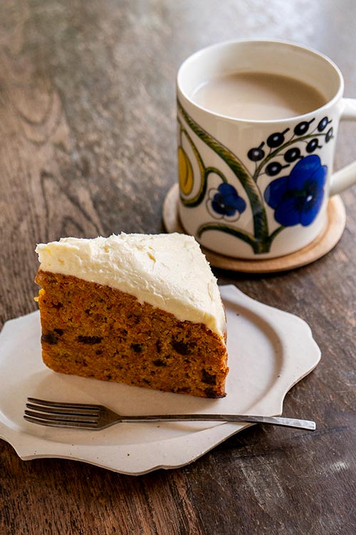 「焼き菓子工房 Ratatta」さんのキャロットケーキ。 さっそく「陶芸shop MY」さんで買ったお皿に乗せていただきました。
