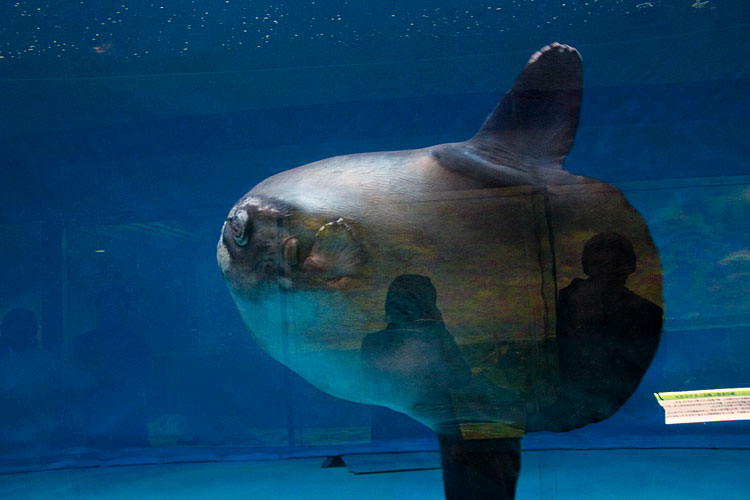 反対側が水槽に映って二重露光したみたいになってる。
