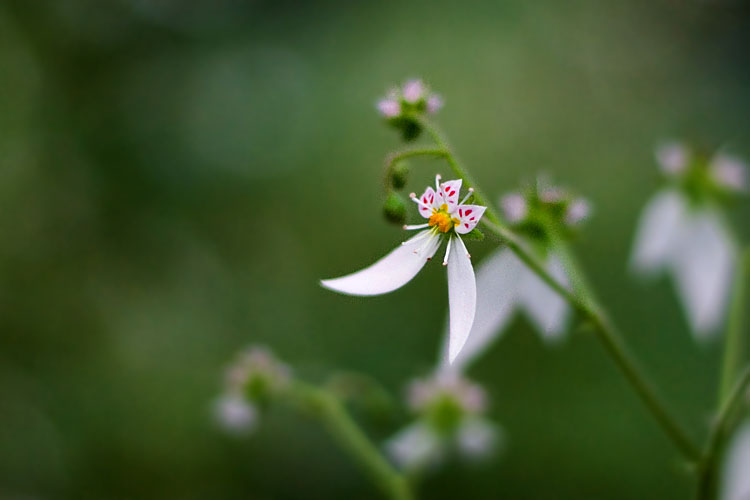 去年の今頃、オットの実家の裏の方で見つけて、「なんじゃこれー」って思って撮った写真。 珍しい花かと思って、調べてみたら「ユキノシタ」という、半日陰地の岩場や人家の裏の石垣とかで育ち、 葉はてんぷらにされたりするそんなにめずらしくもない花のようでした。
