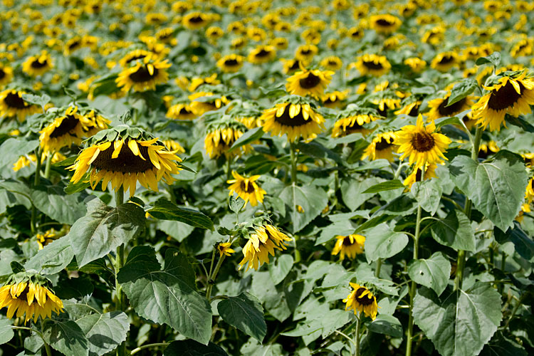 10月なのにヒマワリ。 ストックではなく9月下旬が見頃の朝倉市「杷木の大ひまわり園」。 とはいえ、さすがに見頃は過ぎたのか、16万本のヒマワリがうつむいちゃってました。 でも見事に揃ってしょんぼりしてるみたいで、なんだかかわいい。 この後、お隣のうきは、吉井町へ移動。 4枚連続で更新します。