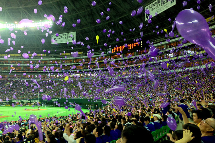 7回裏、ホークスの攻撃の前に風船を飛ばします。