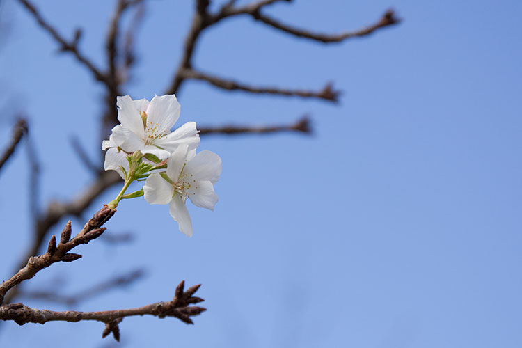 」の東庭園で、なんと桜が咲いていました。